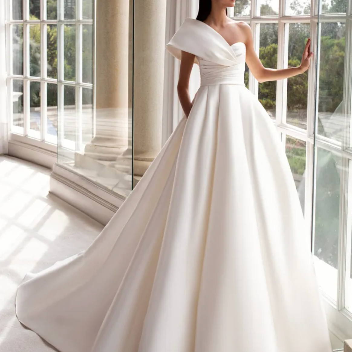 La silueta princesa y la silueta e A son tradicionales e imponentes, resaltan por una falda voluminosa que nace de una cintura ceñida y una impactante cola.