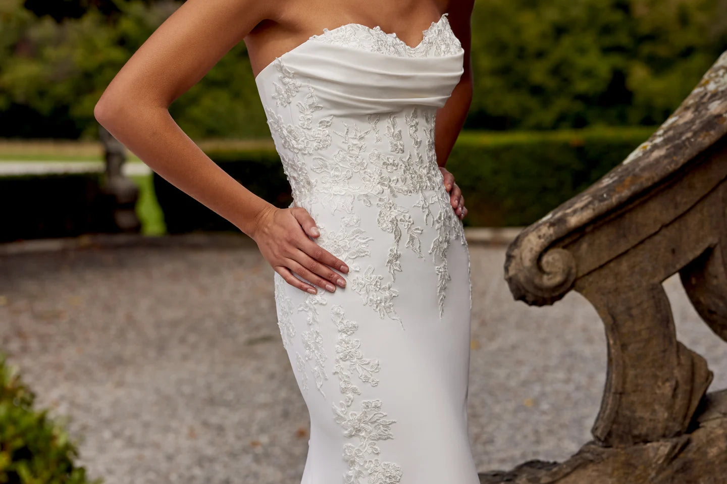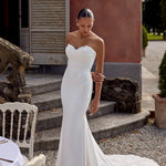 Los vestidos se acomodan al cuerpo de cada novia. El rango de tallas que tenemos en stock va desde la 38 (XS) hasta la 42 (L). Si no tenemos tu talla disponible, podemos traerla a pedido (sujeto a disponibilidad).