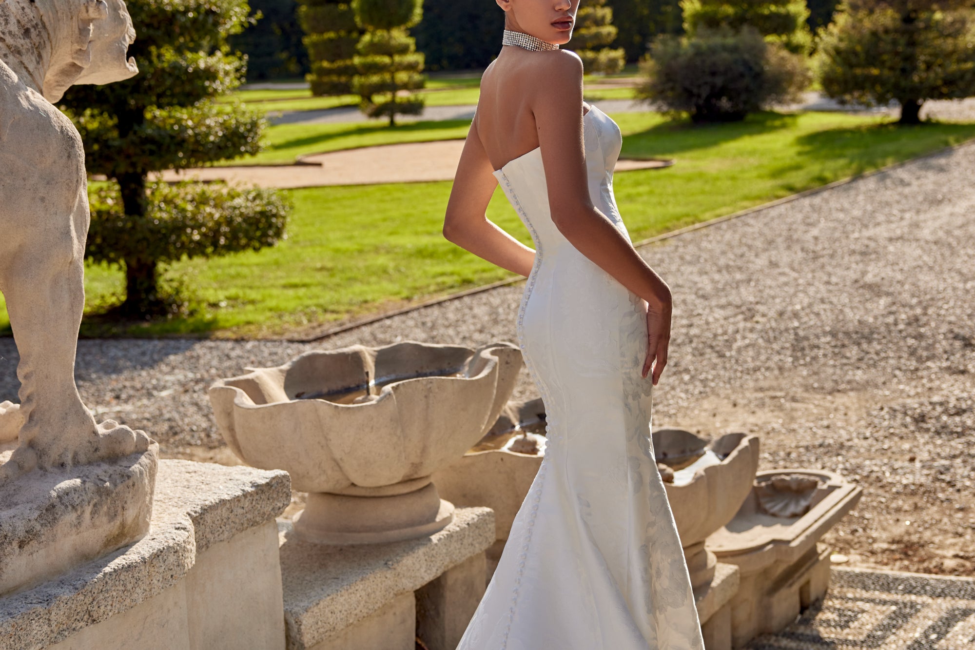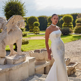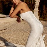 Vestido de novia 88454 de Justin Alexander con elegancia moderna, falda con movimiento y escote strapless para un look equilibrado. Su confección de alta calidad favorece la silueta en fotos y movimiento y asegura un calce pulcro en cada ángulo.