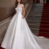 Vestido de novia princesa con escote corazón y espalda descubierta en mikado